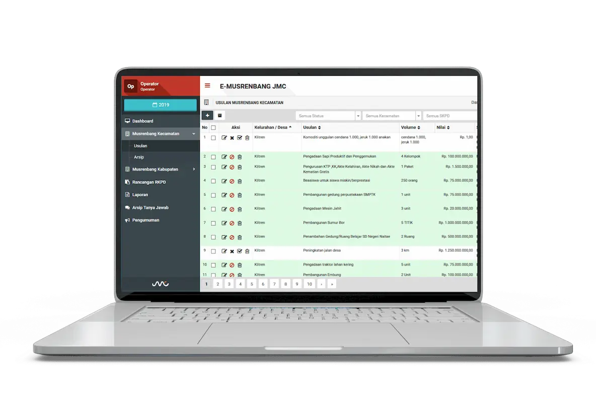 Aplikasi e-Musrenbang adalah sistem digital yang membantu pemerintah mengelola usulan dan partisipasi masyarakat dalam proses perencanaan pembangunan daerah, mulai dari tingkat desa/kelurahan hingga kabupaten/kota. Aplikasi ini memastikan setiap aspirasi tercatat, terverifikasi, dan dapat dipantau dengan lebih transparan sehingga proses Musrenbang menjadi lebih tertib, efektif, dan akuntabel.