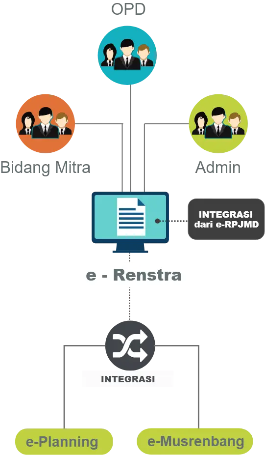 Aplikasi e-Renstra adalah sistem digital yang membantu perangkat daerah menyusun Rencana Strategis (Renstra) secara lebih konsisten, terarah, dan selaras dengan program RPJMD. Melalui aplikasi ini, setiap rencana kegiatan dapat disusun, dikendalikan, dan dipantau agar tetap sesuai dengan tujuan pembangunan daerah, sehingga proses perencanaan menjadi lebih efektif, terstruktur, dan mudah diawasi.